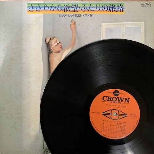 クラウン GW-3075~6 ささやかな欲望・ふたりの旅路 ビッグ・ヒット歌謡ベスト36 発売: 1975年10月 ジャケット+盤 A1 ささやかな欲望 (山口百恵)Ⓐ A2 上野市 (西岡たかし)Ⓑ A3 みれん心 (細川たかし)Ⓒ A4 夕立ちのあとで (野口五郎)Ⓓ A5 あなたを待って三年…