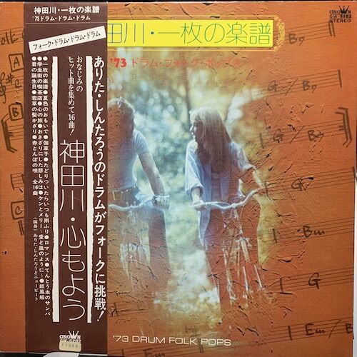 クラウン GW-5282 '73 ドラム・フォーク・ポップス 神田川・一枚の楽譜 発売: 1973年12月 ジャケット A1 神田川 (かぐや姫) A2 一枚の楽譜 (ガロ) A3 夏色のおもいで (チューリップ) A4 心もよう (井上陽水) A5 伽草子 (吉田拓郎) →6/18 A6 たどりついた…